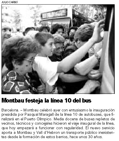 El 8 de julio de 1996 -a las 18h- se inauguró oficialmente esta línea, con mucho entusiamos por parte de los vecinos. Media docena de buses repletos de vecinos, técnicos y concejales hicieron el viaje inaugural de la línea. La línea era muy esperada ya que aportaba a Montbau y Vall d'Hebron un transporte público inexistentes desde la formación de estos barrios, hace unos 30 años. Con los lemas "Un 10 para Barcelona, un 10 para tí", "El Bus 10" y "Nace la línea 10, de Montbau al Puerto Olímpico" TMB llevó a cabo una campaña por tal de informar a los ciudadanos. La línea unía el barrio de Montbau y Valle Hebrón con el Mar y el Paseo Marítimo. Discurría por el túnel de Rovira, y bajaba por la calle Lepanto (subía por Castillejos) hasta llegar la calle Marina y acabar cerca del puerto olímpico. En su creación, su trayecto prentendia unir mejor los trayectos mar-montaña y comunicar dos áreas de nueva centralidad y en expansión, como son el barrio de la Vil·la Olímpica y la nueva zona universitaria de las Llars Mundet. Podemos pensar que un embrión de esta línea, es la Línea 401 que comenzó a funcionar el año 1988 con la puesta en servicio del Tunel de la Rovira, unia la parada de metro de Alfonso X (en la entrada sur del Tunel), con la Rambla Carmelo (la entrada norte del tunel). A la llegada de la línea 10, esta línea dejó de prestar servicio. Ya solo comenzar los vecinos se quejaron de que la nueva línea 10 comenzaba demasiado tarde - 6.30h de la mañana - en comparación con la línea anterior 401 que iniciaba su recorrido a las 4.45 de la madrugada y daba tiempo a los usuarios a enlazar con la línea 4 de metro en la estación de Guinardó. Al año siguiente de su puesta en marcha, en febrero de 1997, los vecinos de Sant Genís también pidieron al distrito de Horta-Guinardó que la ampliara con dos paradas para llegar a Sant Genís. Cosa que no se hizo. El 16 de mayo del 2002 hizo una leve modificación de su recorrido, sentido mar. Dejó de circular por la Cta. Ribas a la calle Marina, para hacerlo por Lepant, Ausias March y Marina. [Plano de la modificación] En el año 2005 se completó la subtitición de todos los autobuses estándar por articulados. El 1 de octubre del 2012 se suprimió esta línea 10, para substituirlo por la nueva línea V21 de una nueva red ortogonal de autobús. Prácticamente la nueva línea V21 realizaba el mismo recorrido que la 10.